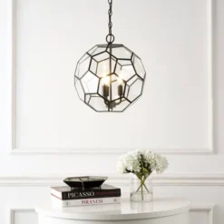 Give your living room’s lighting a unique twist with this Madigan pendant lamp. Flaunting an elegantly-curved, clear glass shade, this three-light lamp with its sturdy, metal hardware lights up your room brilliantly. A weathered, antique finish completes this fixture’s contemporary flair.