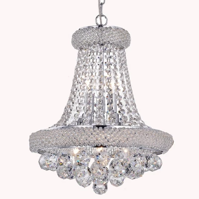 Bring on the glam when you install this Isidra chandelier. Strands of crystals cascade between two sparkling tiers, filling your entryway with shimmering light. Multi-faceted drop crystals at the base amp up the style in the room. With six lights, this fixture creates a soft, glittering glow.