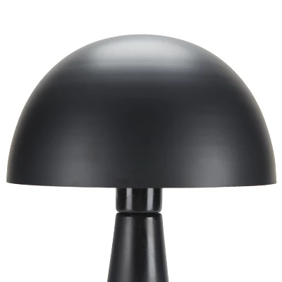 Retro-inspired glamour. Channeling the sleek yet simplistic flair of mid-century modern design, this contemporary table lamp delivers a polished sense of style to your decor. Crafted of pure iron with a tapered base, this small table lamp fits easily atop your living room or bedside table. The classic domed shade casts a soft downlight glow; great for reading and relaxation time.