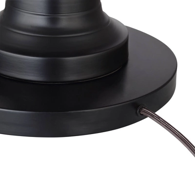 The classic traditional style of this floor lamp adds simple elegance to your living space. With an exquisite oiled bronze finish and an off-white shade, this timeless design is sure to gracefully blend into your classic-looking home. The twin pull chains make it easy to turn each light on and off. A black finish round riser is included to give the lamp extra height and presence in a room.