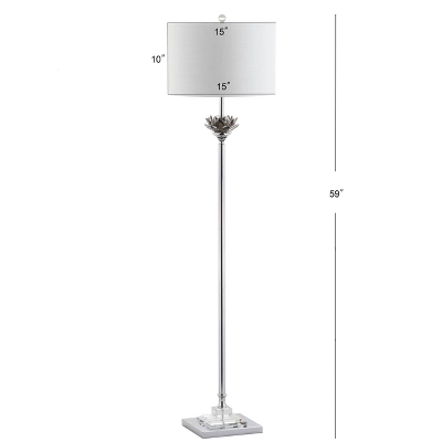 - Smoked crystal lotus accent on chrome floor lamp base adds Eastern influence to a classic silhouette
