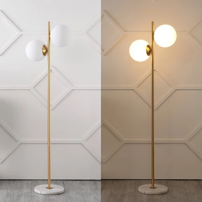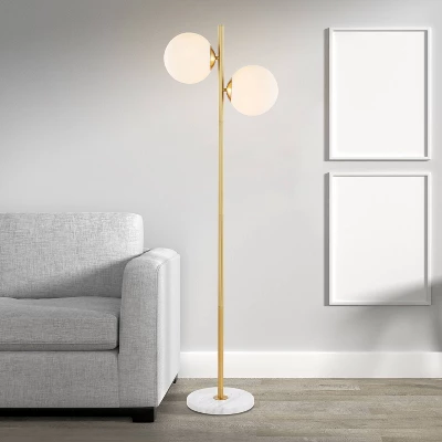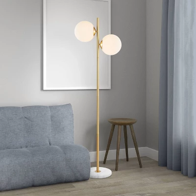 Bring on the vintage Parisian flair with our classic bistro-inspired floor lamp. The LED bulbs provide two levels of warm, bright light, softened by glass globes. This lamp’s elegant 60” height is also securely anchored into a weighted marble base.