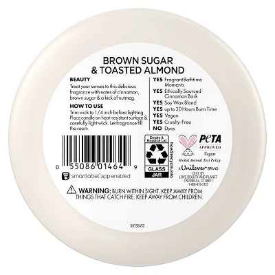 - As a part of the Beloved by Love Beauty and Planet Brown Sugar & Toasted Almond bath and body collection, this vegan candle is an ideal gift to give or treat yourself.