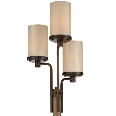 Bring beautiful illumination into your home with this design from Franklin Iron Works. This metal floor lamp comes in a faux wood finish, with bronze finish accenting for a handsome, hardy look. The frame branches up into three arms, each of which supports a tea alabaster glass shade. The result is a convenient three-light tree floor lamp in an industrial farmhouse style, perfect for brightening up a living room or bedroom space.