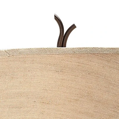 Get lighting and tabletop space in one design with this handsome floor lamp. The lamp features a twist metal base in a dark rust finish, along with a handy wooden tray table for drinks, TV remotes and more. Wood table in walnut finish. A linen bell shade with decorative finial completes the look on top. Wood and metal construction.