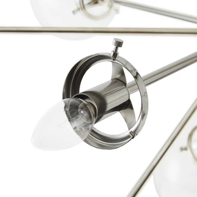 With its contemporary design, our Paige 12-Light Chandelier with Oversized Globe Bulbs adds intrigue to any space. This metal and glass chandelier features a one-of-a-kind look, with twelve clear glass shades and an adjustable base. An antique brass finish provides a sleek modern touch to any living and dining rooms. We suggest professional installation. Twelve Type-B light bulbs are needed. Bulbs are not included.