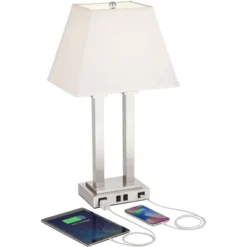 - USB table lamp design from the Possini Euro Design® brand. Edison filament style LED bulb.