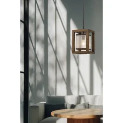 (28″ X 28″) 6 Light Wood And Metal Round Monza Chandelier With Mesh Shade Brown – Cal Lighting