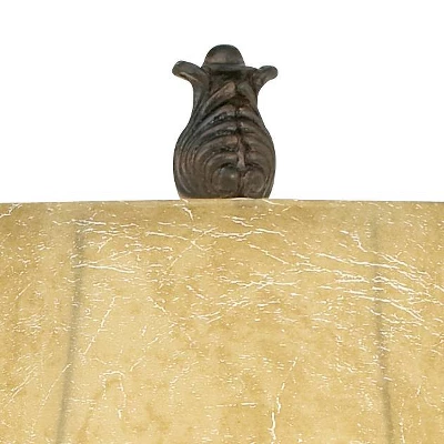 - Bronze finish. Metal construction. Faux leather shade. 7-foot long of brown cord with brown plug.