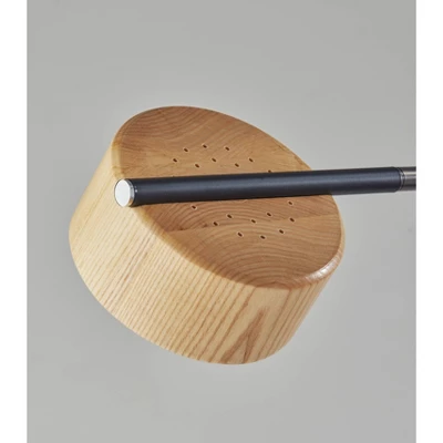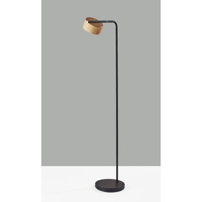 Featuring a blend of natural and contemporary elements and designs, the 55″ tall Roman LED floor lamp adds distinctive style behind or beside chairs, love seats, or sofas. The round 9.75″ diameter black metal base and matching stem with brushed steel accents present clean lines and a slim profile to complement contemporary or modern chic décor. For a contrast in color and material, the cylindrical lampshade is crafted of natural oak. The lamp also offers versatile lighting options at the touch of a finger. A touch step dimmer switch makes it easy to adjust the integrated 12W LED light between low, medium, high, and off, while the lampshade can be rotated to direct the light wherever it’s needed. The lamp is also powered by a 6′ black fabric-covered cord. Complete your space’s décor with the coordinating Roman LED desk lamp.