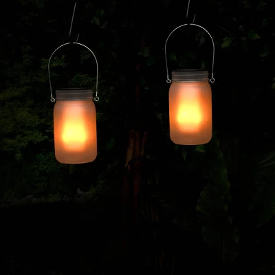 Illuminate your outdoor space with the Alpine Corporation Set of 2 Outdoor Solar Powered Lantern Flickering LED Light Jars! This set of 2 lawn decorations features illuminated jars to light up your outdoor living space. Perfect for hanging or placing on a tabletop, the solar-powered flickering warm white LEDs create a flame effect to light up your porch, patio, or landscaping throughout the night. The durable design of these jars provides long-lasting use year after year. Simply place these jars on the ground or on any outdoor surface for quick and easy setup. Measuring 4″” x 4″” x 7″” and 11″” when hung, these flickering LED jars make a statement in your outdoor space and are perfect for pairing with Alpine yard stakes (sold separately).