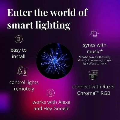 - Watch your lights dance to Twinkly Music (sold separately), a smart USB-powered sound sensor that interprets ambient music and sounds in your space and applies synchronized colors and effects to your lights